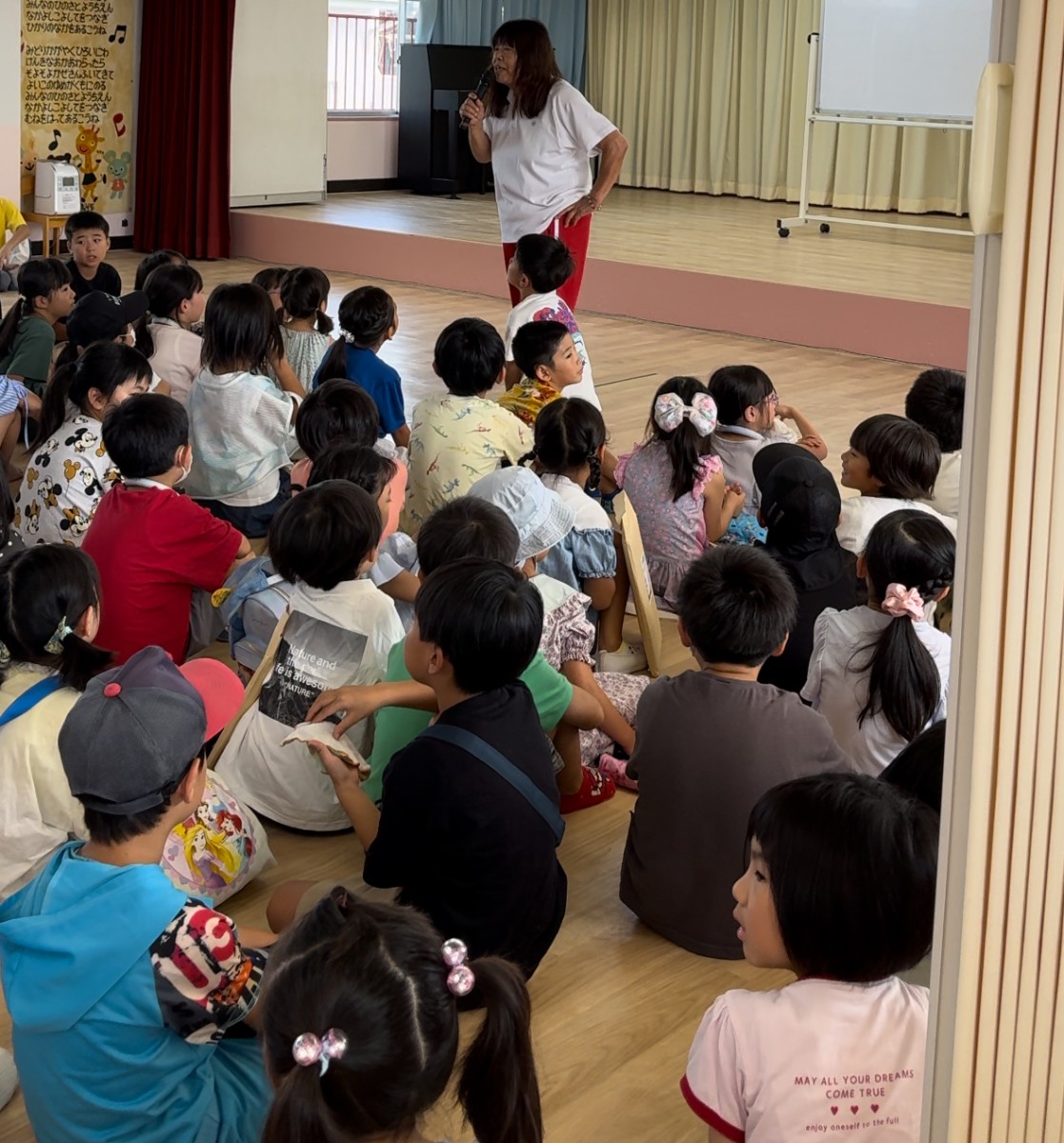みんながお泊まり保育、夏季保育で踊った「お誕生月なかま」を踊りました。