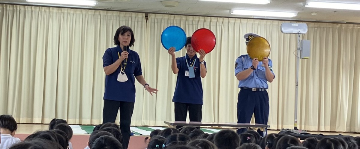 楽しい紙芝居や、本物の信号機の青・黄色・赤を